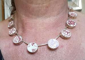 2020scherven sieraad. Van 'delfts'Rood gemaakt in zilver